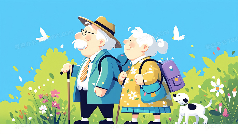 本作品内容为重阳节老年夫妻郊游出游风景插画, 格式为 jpg, 大小2 MB, 图片尺寸为2912 x 1632, 源文件无水印, 欢迎使用熊猫办公。 如认为平台内容涉嫌侵权,可通过邮件:tousu@tukuppt.com提出书面通知,我们将及时处理。