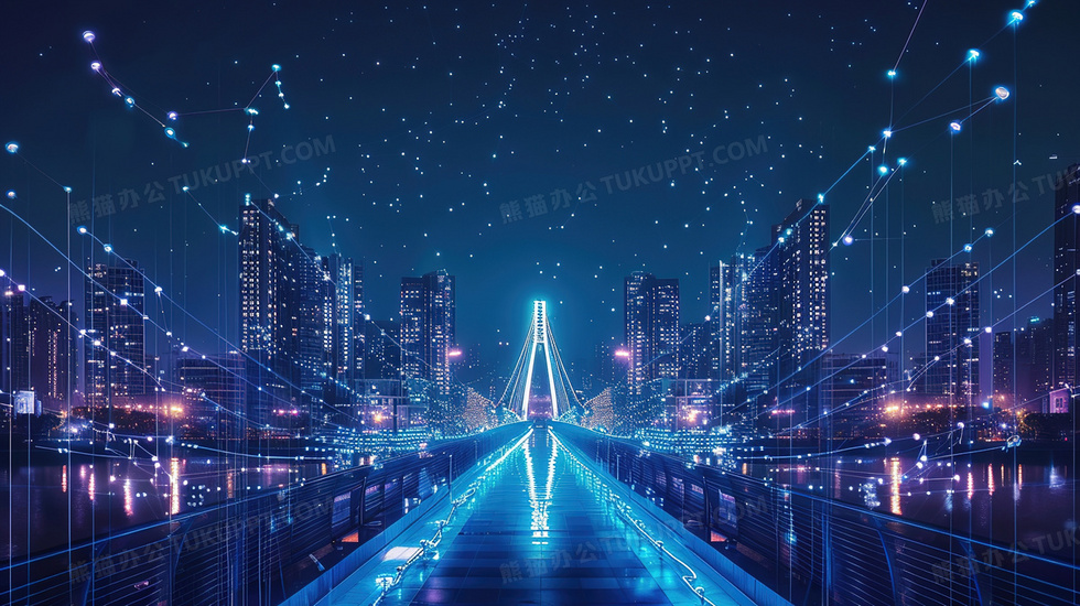 本作品内容为蓝色科技感信息化桥梁背景, 格式为 jpg, 大小3 MB, 图片尺寸为2912 x 1632, 作品中背景图片无需修改, 源文件无水印,可以直接使用, 欢迎使用熊猫办公。 如认为平台内容涉嫌侵权,可通过邮件:tousu@tukuppt.com提出书面通知,我们将及时处理。