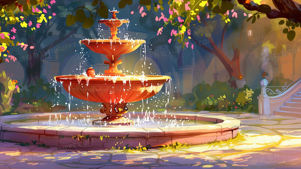 本作品内容为公园大树欧式喷泉风景插画, 格式为 jpg, 大小3 MB, 图片尺寸为2912 x 1632, 源文件无水印, 欢迎使用熊猫办公。 如认为平台内容涉嫌侵权,可通过邮件:tousu@tukuppt.com提出书面通知,我们将及时处理。