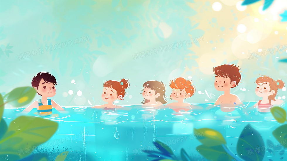 本作品内容为夏季水池游泳玩耍的小朋友插画, 格式为 jpg, 大小2 MB, 图片尺寸为2912 x 1632, 源文件无水印, 欢迎使用熊猫办公。 如认为平台内容涉嫌侵权,可通过邮件:tousu@tukuppt.com提出书面通知,我们将及时处理。