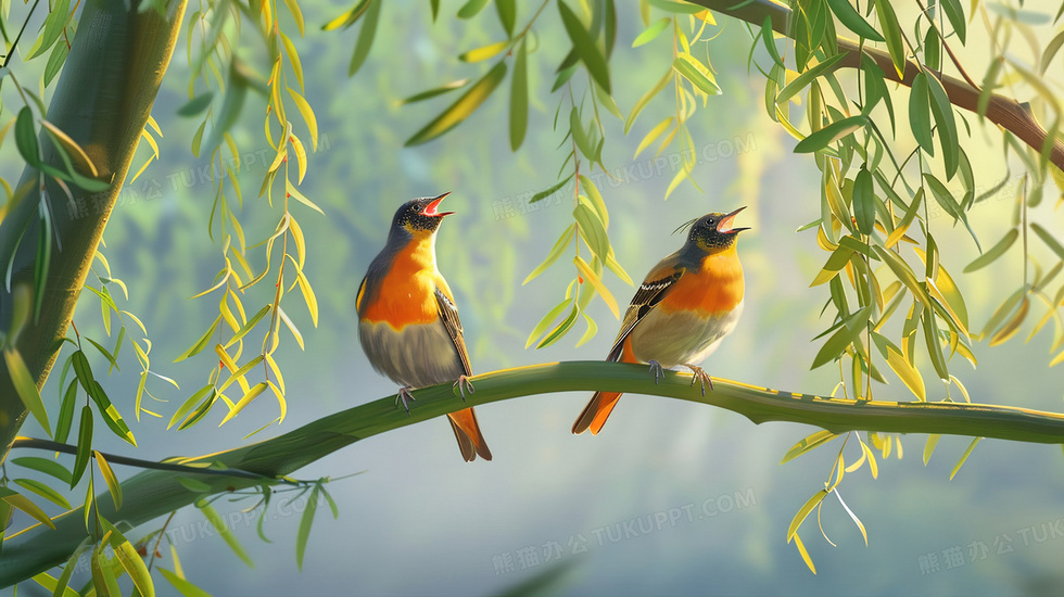 本作品内容为蓝天白云树枝上的两只鸟插画, 格式为 jpg, 大小3 MB, 图片尺寸为2912 x 1632, 源文件无水印, 欢迎使用熊猫办公。 如认为平台内容涉嫌侵权,可通过邮件:tousu@tukuppt.com提出书面通知,我们将及时处理。