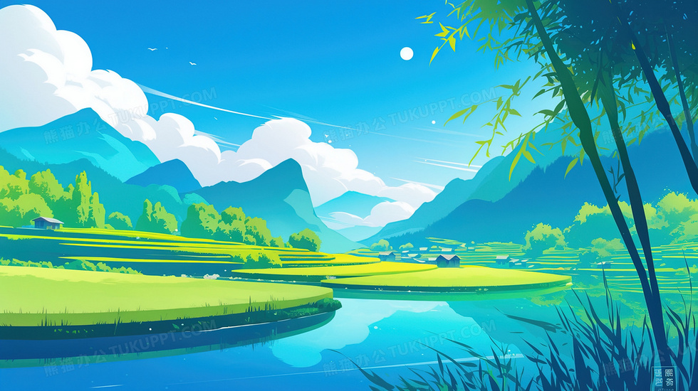 本作品内容为蓝天白云梯田大自然风景插画, 格式为 jpg, 大小3 MB, 图片尺寸为2912 x 1632, 源文件无水印, 欢迎使用熊猫办公。 如认为平台内容涉嫌侵权,可通过邮件:tousu@tukuppt.com提出书面通知,我们将及时处理。