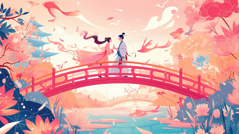 本作品内容为鹊桥七夕牛郎织女中国风情人节插画, 格式为 jpg, 大小3 MB, 图片尺寸为2912 x 1632, 源文件无水印, 欢迎使用熊猫办公。 如认为平台内容涉嫌侵权,可通过邮件:tousu@tukuppt.com提出书面通知,我们将及时处理。