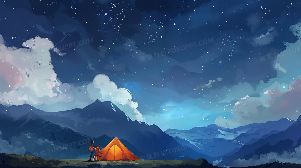 本作品内容为宁静夜晚露营背景, 格式为 jpg, 大小3 MB, 图片尺寸为2912 x 1632, 作品中背景图片无需修改, 源文件无水印,可以直接使用, 欢迎使用熊猫办公。 如认为平台内容涉嫌侵权,可通过邮件:tousu@tukuppt.com提出书面通知,我们将及时处理。