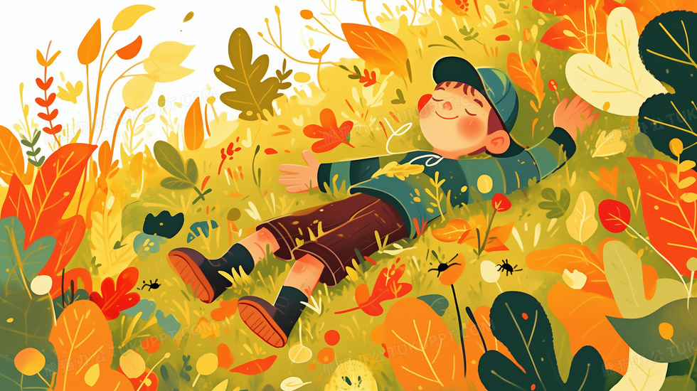 本作品内容为孩子躺在草丛中享受秋日的温暖绘本风格插画, 格式为 jpg, 大小7 MB, 图片尺寸为2912 x 1632, 源文件无水印, 欢迎使用熊猫办公。 如认为平台内容涉嫌侵权,可通过邮件:tousu@tukuppt.com提出书面通知,我们将及时处理。
