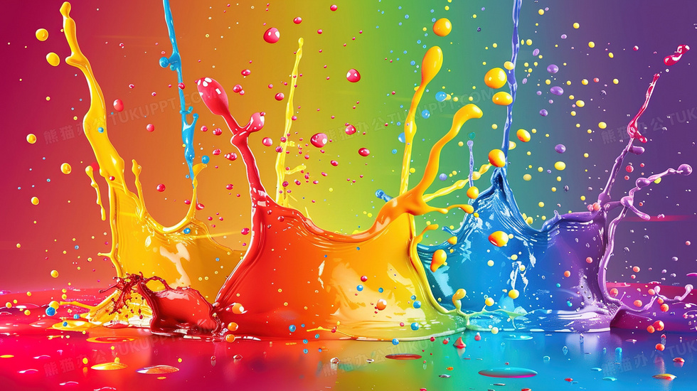本作品内容为彩色液体飞溅液体背景, 格式为 jpg, 大小3 MB, 图片尺寸为2912 x 1632, 作品中背景图片无需修改, 源文件无水印,可以直接使用, 欢迎使用熊猫办公。 如认为平台内容涉嫌侵权,可通过邮件:tousu@tukuppt.com提出书面通知,我们将及时处理。