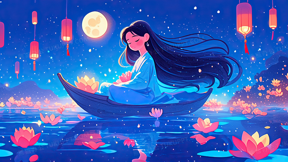 本作品内容为中元节小女孩船上放荷花花灯祈福插画, 格式为 jpg, 大小4 MB, 图片尺寸为2912 x 1632, 源文件无水印, 欢迎使用熊猫办公。 如认为平台内容涉嫌侵权,可通过邮件:tousu@tukuppt.com提出书面通知,我们将及时处理。