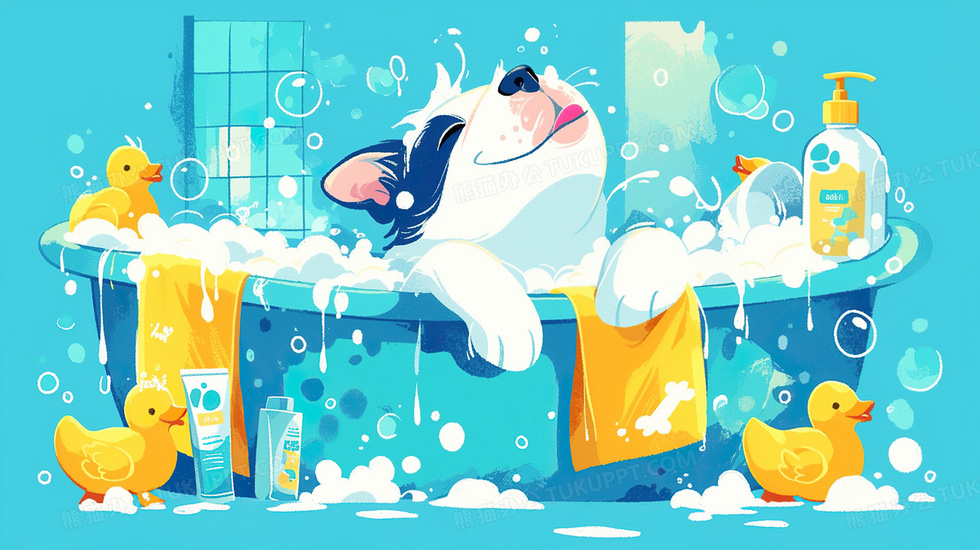 本作品内容为小狗在浴室洗澡宠物插画, 格式为 jpg, 大小3 MB, 图片尺寸为2912 x 1632, 源文件无水印, 欢迎使用熊猫办公。 如认为平台内容涉嫌侵权,可通过邮件:tousu@tukuppt.com提出书面通知,我们将及时处理。