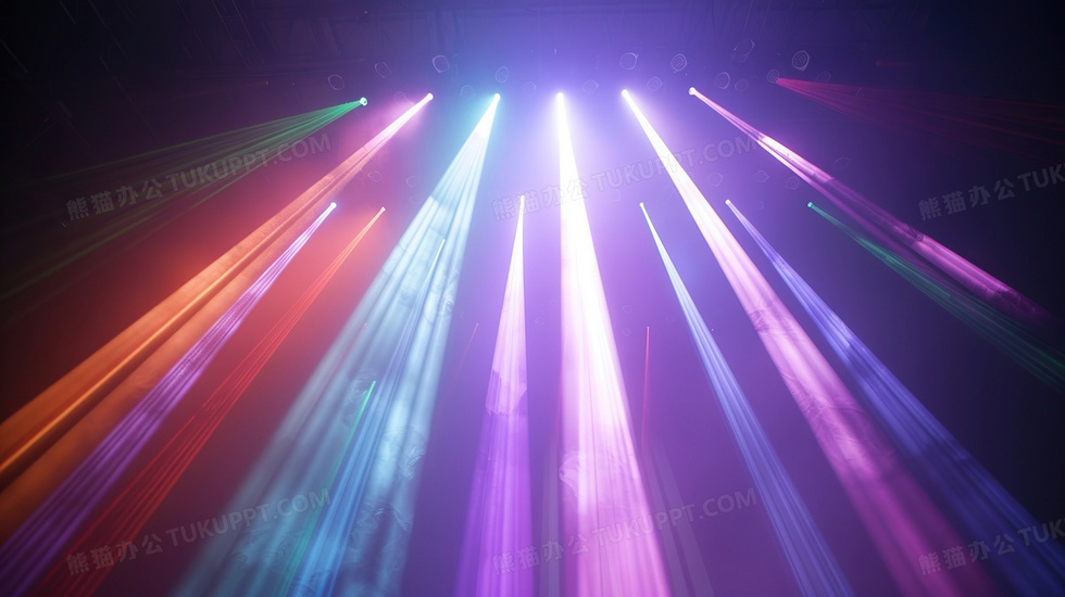 本作品内容为彩色舞台灯光光束背景, 格式为 jpg, 大小2 MB, 图片尺寸为2912 x 1632, 作品中背景图片无需修改, 源文件无水印,可以直接使用, 欢迎使用熊猫办公。 如认为平台内容涉嫌侵权,可通过邮件:tousu@tukuppt.com提出书面通知,我们将及时处理。
