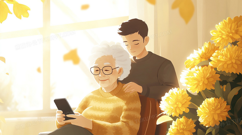 本作品内容为关爱老年人儿子与母亲重阳节插画风背景, 格式为 jpg, 大小2 MB, 图片尺寸为2912 x 1632, 作品中背景图片无需修改, 源文件无水印,可以直接使用, 欢迎使用熊猫办公。 如认为平台内容涉嫌侵权,可通过邮件:tousu@tukuppt.com提出书面通知,我们将及时处理。