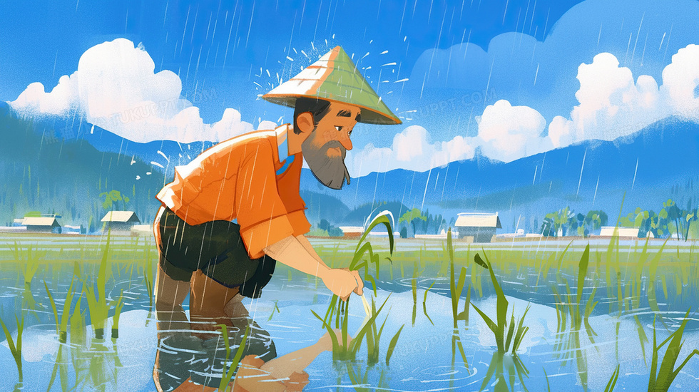 本作品内容为雨天水稻田里插秧的农民伯伯农业插画, 格式为 jpg, 大小4 MB, 图片尺寸为2912 x 1632, 源文件无水印, 欢迎使用熊猫办公。 如认为平台内容涉嫌侵权,可通过邮件:tousu@tukuppt.com提出书面通知,我们将及时处理。