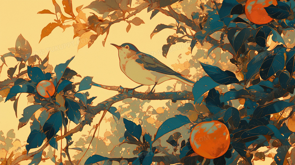 本作品内容为中国风秋天柿子树上的小鸟插画, 格式为 jpg, 大小4 MB, 图片尺寸为2912 x 1632, 源文件无水印, 欢迎使用熊猫办公。 如认为平台内容涉嫌侵权,可通过邮件:tousu@tukuppt.com提出书面通知,我们将及时处理。