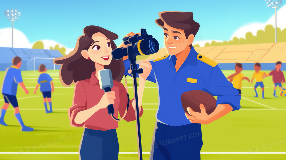 本作品内容为女记者现场报道橄榄球体育赛事插画, 格式为 jpg, 大小2 MB, 图片尺寸为2912 x 1632, 源文件无水印, 欢迎使用熊猫办公。 如认为平台内容涉嫌侵权,可通过邮件:tousu@tukuppt.com提出书面通知,我们将及时处理。