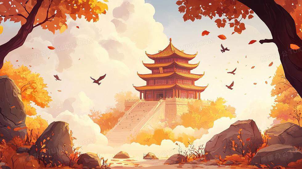 本作品内容为中式美学宝塔古代建筑插画, 格式为 jpg, 大小3 MB, 图片尺寸为2912 x 1632, 源文件无水印, 欢迎使用熊猫办公。 如认为平台内容涉嫌侵权,可通过邮件:tousu@tukuppt.com提出书面通知,我们将及时处理。
