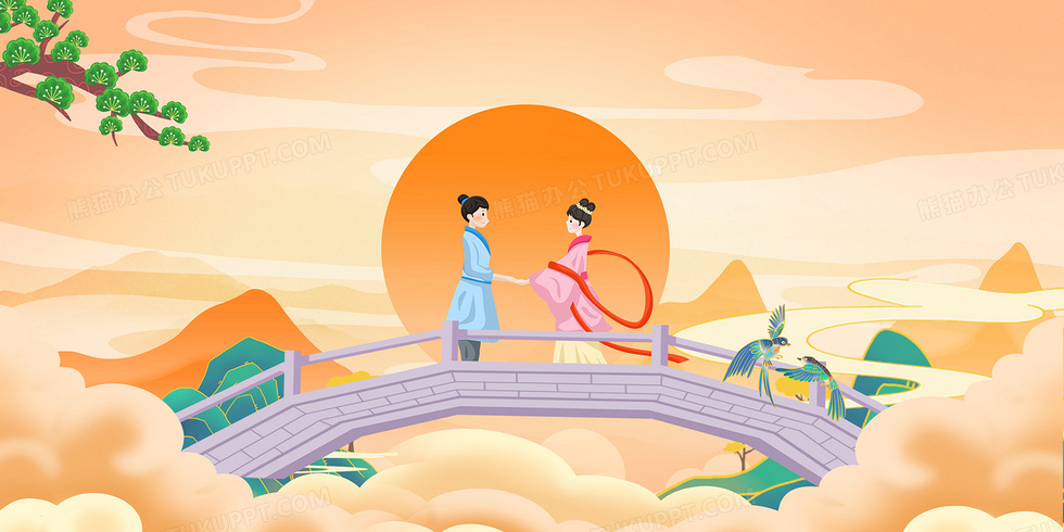 本作品内容为国潮风七夕情人节牛郎织女背景, 格式为 psd, 大小28 MB, 图片尺寸为4724 x 2362, 作品中背景图片无需修改, 源文件无水印,可以直接使用, 欢迎使用熊猫办公。 如认为平台内容涉嫌侵权,可通过邮件:tousu@tukuppt.com提出书面通知,我们将及时处理。