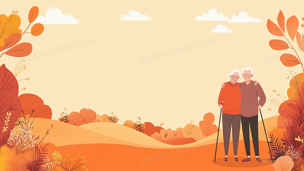 本作品内容为重阳节老人节日背景, 格式为 jpg, 大小2 MB, 图片尺寸为2912 x 1632, 作品中背景图片无需修改, 源文件无水印,可以直接使用, 欢迎使用熊猫办公。 如认为平台内容涉嫌侵权,可通过邮件:tousu@tukuppt.com提出书面通知,我们将及时处理。