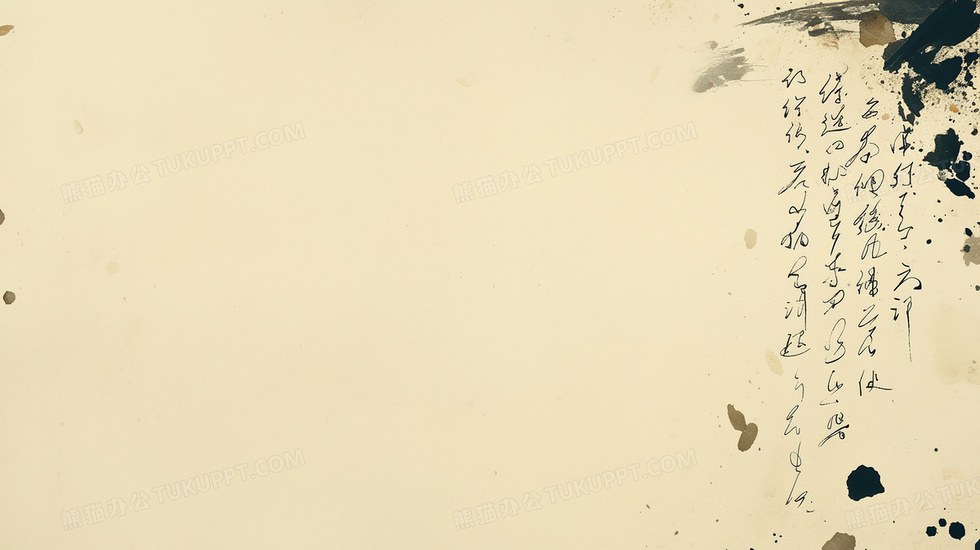 本作品内容为毛笔书法中国风背景, 格式为 jpg, 大小2 MB, 图片尺寸为2912 x 1632, 作品中背景图片无需修改, 源文件无水印,可以直接使用, 欢迎使用熊猫办公。 如认为平台内容涉嫌侵权,可通过邮件:tousu@tukuppt.com提出书面通知,我们将及时处理。