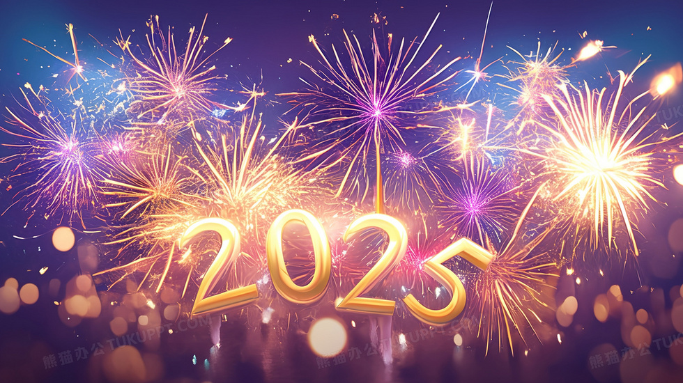 本作品内容为新年2025元旦跨年燃放烟花数字创意插画, 格式为 jpg, 大小3 MB, 图片尺寸为2912 x 1632, 源文件无水印, 欢迎使用熊猫办公。 如认为平台内容涉嫌侵权,可通过邮件:tousu@tukuppt.com提出书面通知,我们将及时处理。