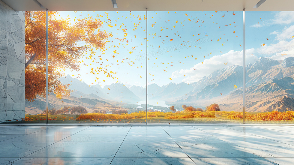 首页 > 背景图库 > 科技艺术 > 海报banner > 秋天合成秋季落叶落地窗简约背景