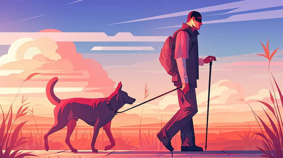 本作品内容为路上的导盲犬与男性盲人插画, 格式为 jpg, 大小2 MB, 图片尺寸为2912 x 1632, 源文件无水印, 欢迎使用熊猫办公。 如认为平台内容涉嫌侵权,可通过邮件:tousu@tukuppt.com提出书面通知,我们将及时处理。