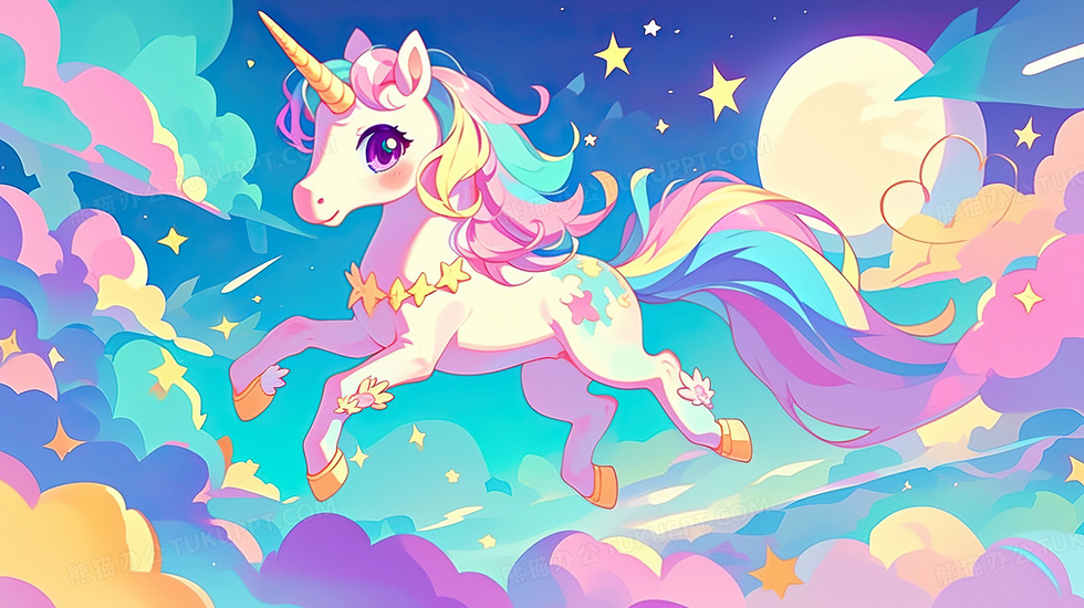 本作品内容为梦幻彩虹独角兽插画, 格式为 jpg, 大小3 MB, 图片尺寸为2912 x 1632, 源文件无水印, 欢迎使用熊猫办公。 如认为平台内容涉嫌侵权,可通过邮件:tousu@tukuppt.com提出书面通知,我们将及时处理。