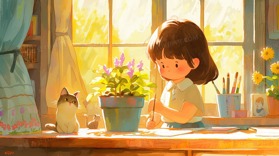 本作品内容为窗边桌面种花的小女孩插画, 格式为 jpg, 大小3 MB, 图片尺寸为2912 x 1632, 源文件无水印, 欢迎使用熊猫办公。 如认为平台内容涉嫌侵权,可通过邮件:tousu@tukuppt.com提出书面通知,我们将及时处理。