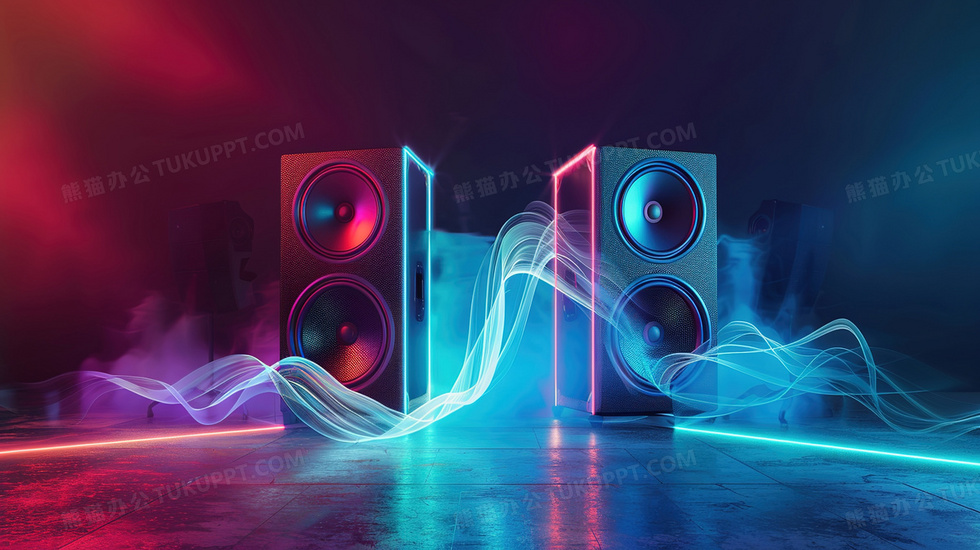 本作品内容为3D音响播放出音符旋律背景, 格式为 jpg, 大小3 MB, 图片尺寸为2912 x 1632, 作品中背景图片无需修改, 源文件无水印,可以直接使用, 欢迎使用熊猫办公。 如认为平台内容涉嫌侵权,可通过邮件:tousu@tukuppt.com提出书面通知,我们将及时处理。