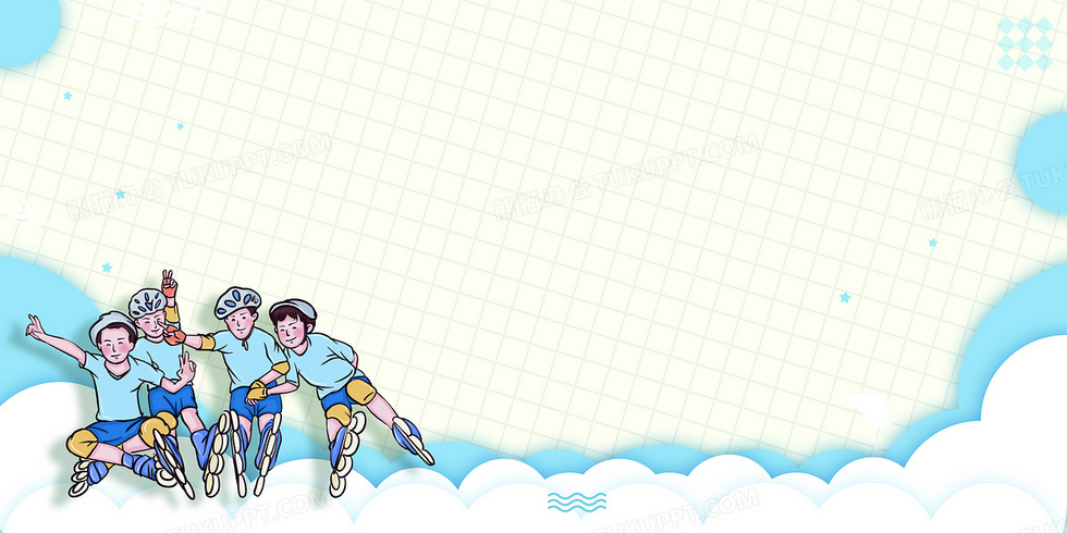 本作品内容为蓝色卡通风轮滑运动背景, 格式为 psd, 大小31 MB, 图片尺寸为4722 x 2361, 作品中背景图片无需修改, 源文件无水印,可以直接使用, 欢迎使用熊猫办公。 如认为平台内容涉嫌侵权,可通过邮件:tousu@tukuppt.com提出书面通知,我们将及时处理。