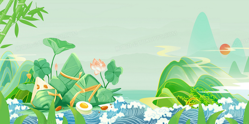 本作品内容为国潮山水中国风卡通粽子端午节背景, 格式为 psd, 大小74 MB, 图片尺寸为4724 x 2362, 作品中背景图片无需修改, 源文件无水印,可以直接使用, 欢迎使用熊猫办公。 如认为平台内容涉嫌侵权,可通过邮件:tousu@tukuppt.com提出书面通知,我们将及时处理。