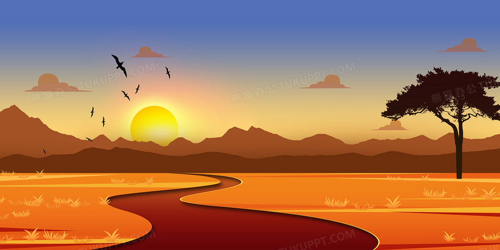 本作品内容为扁平风黎明初生开阔风景清晨剪影背景, 格式为 psd, 大小7 MB, 图片尺寸为4724 x 2362, 作品中背景图片无需修改, 源文件无水印,可以直接使用, 欢迎使用熊猫办公。 如认为平台内容涉嫌侵权,可通过邮件:tousu@tukuppt.com提出书面通知,我们将及时处理。