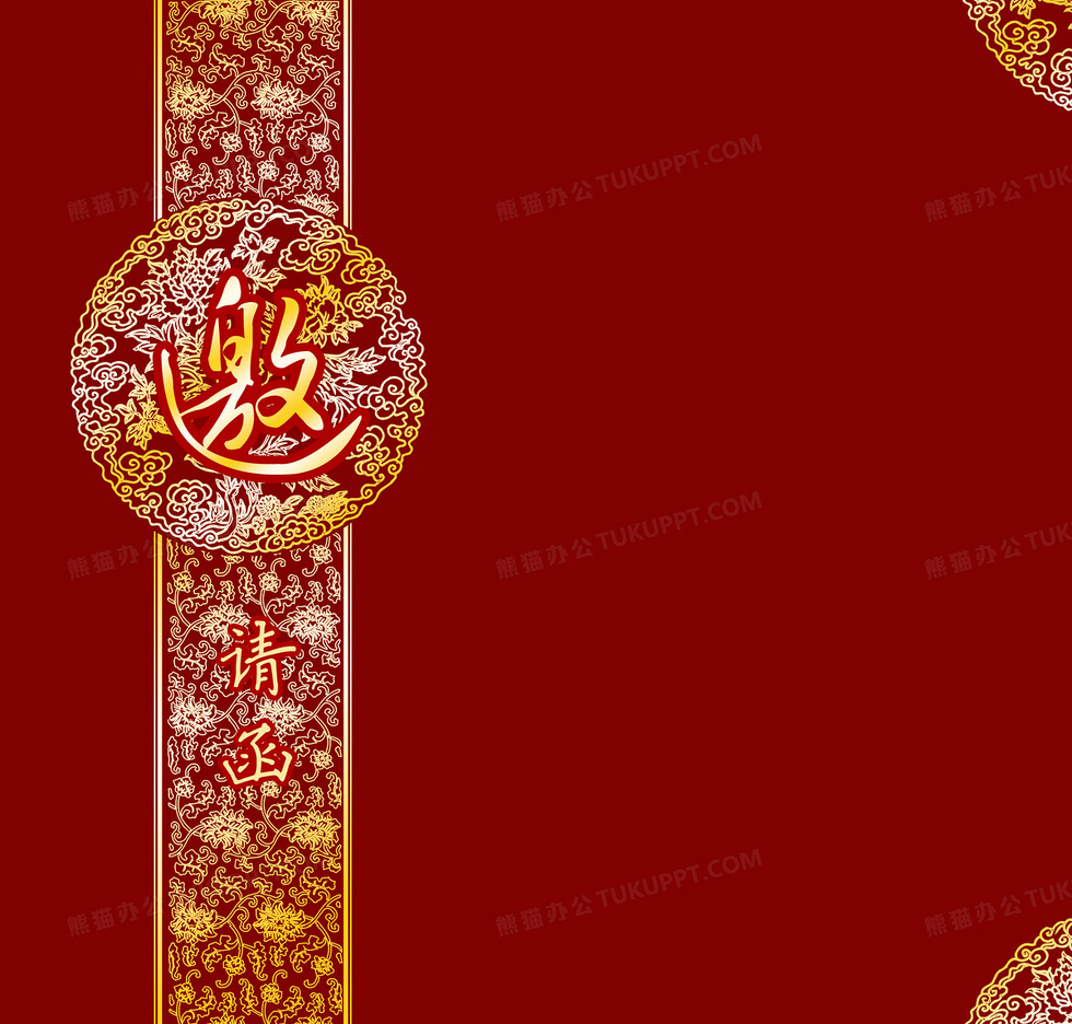 本作品内容为中式红色喜庆婚礼请柬背景素材, 格式为 psd, 图片尺寸为2646 x 2528, 作品中背景图片无需修改, 源文件无水印,可以直接使用, 欢迎使用熊猫办公。 如认为平台内容涉嫌侵权,可通过邮件:tousu@tukuppt.com提出书面通知,我们将及时处理。