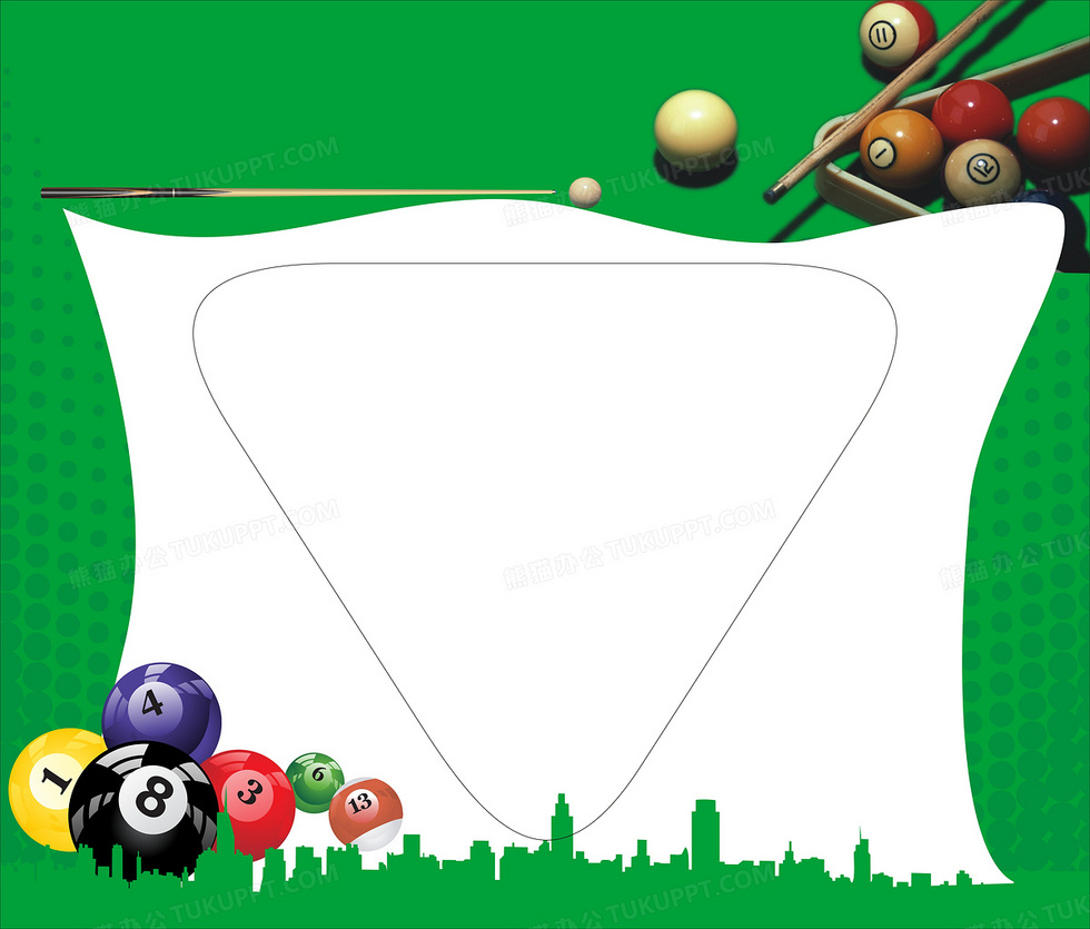 本作品内容为其他绿色台球背景, 格式为 cdr, 图片尺寸为4136 x 3521, 作品中背景图片无需修改, 源文件无水印,可以直接使用, 欢迎使用熊猫办公。 如认为平台内容涉嫌侵权,可通过邮件:tousu@tukuppt.com提出书面通知,我们将及时处理。