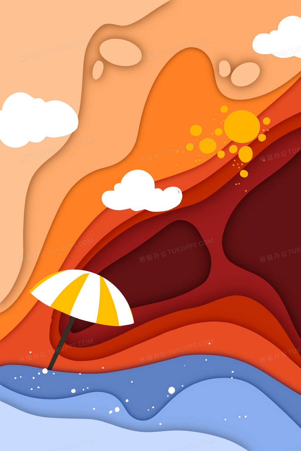 本作品内容为红色夏日骄阳手绘剪纸风插画背景, 格式为 psd, 大小15 MB, 图片尺寸为3543 x 5315, 作品中背景图片无需修改, 源文件无水印,可以直接使用, 欢迎使用熊猫办公。 如认为平台内容涉嫌侵权,可通过邮件:tousu@tukuppt.com提出书面通知,我们将及时处理。