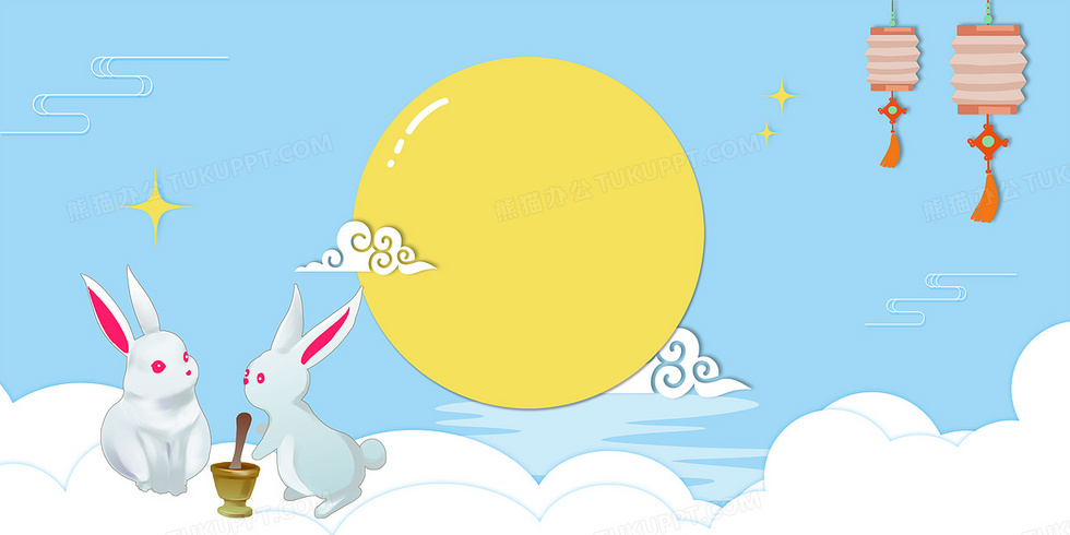本作品内容为中秋节蓝色小清新玉兔简约背景, 格式为 psd, 大小8 MB, 图片尺寸为9449 x 4724, 作品中背景图片无需修改, 源文件无水印,可以直接使用, 欢迎使用熊猫办公。 如认为平台内容涉嫌侵权,可通过邮件:tousu@tukuppt.com提出书面通知,我们将及时处理。