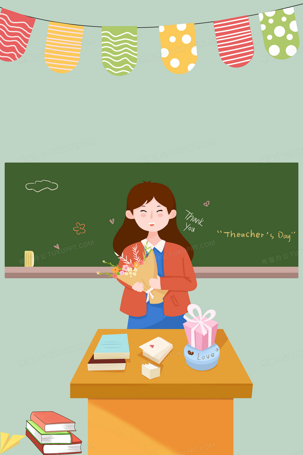 本作品内容为教师节学生献花现场, 格式为 psd, 大小7 MB, 图片尺寸为3543 x 5315, 作品中背景图片无需修改, 源文件无水印,可以直接使用, 欢迎使用熊猫办公。 如认为平台内容涉嫌侵权,可通过邮件:tousu@tukuppt.com提出书面通知,我们将及时处理。