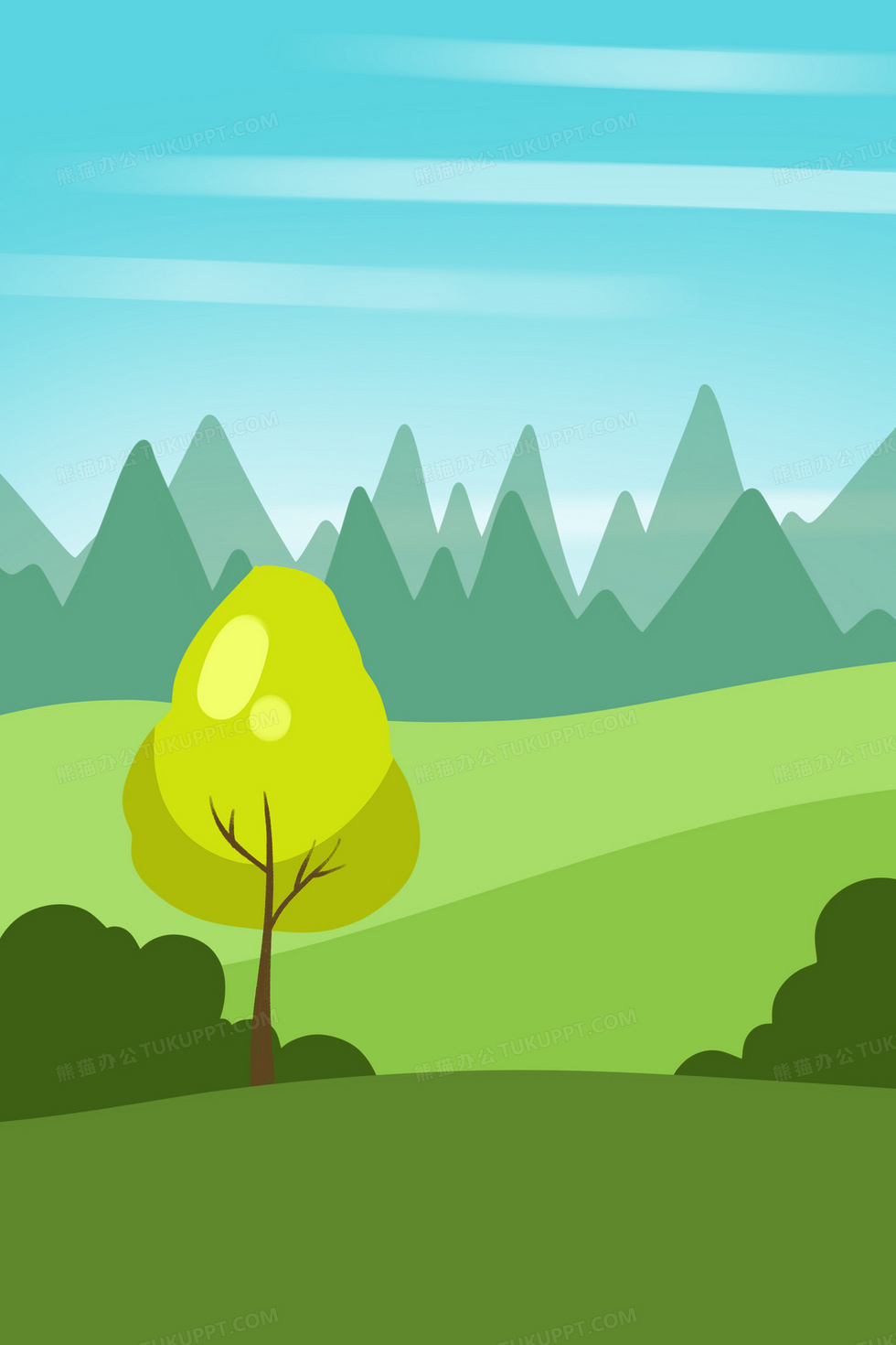 本作品内容为绿色夏日扁平卡通风景插画背景素材, 格式为 psd, 大小6 MB, 图片尺寸为3543 x 5315, 作品中背景图片无需修改, 源文件无水印,可以直接使用, 欢迎使用熊猫办公。 如认为平台内容涉嫌侵权,可通过邮件:tousu@tukuppt.com提出书面通知,我们将及时处理。
