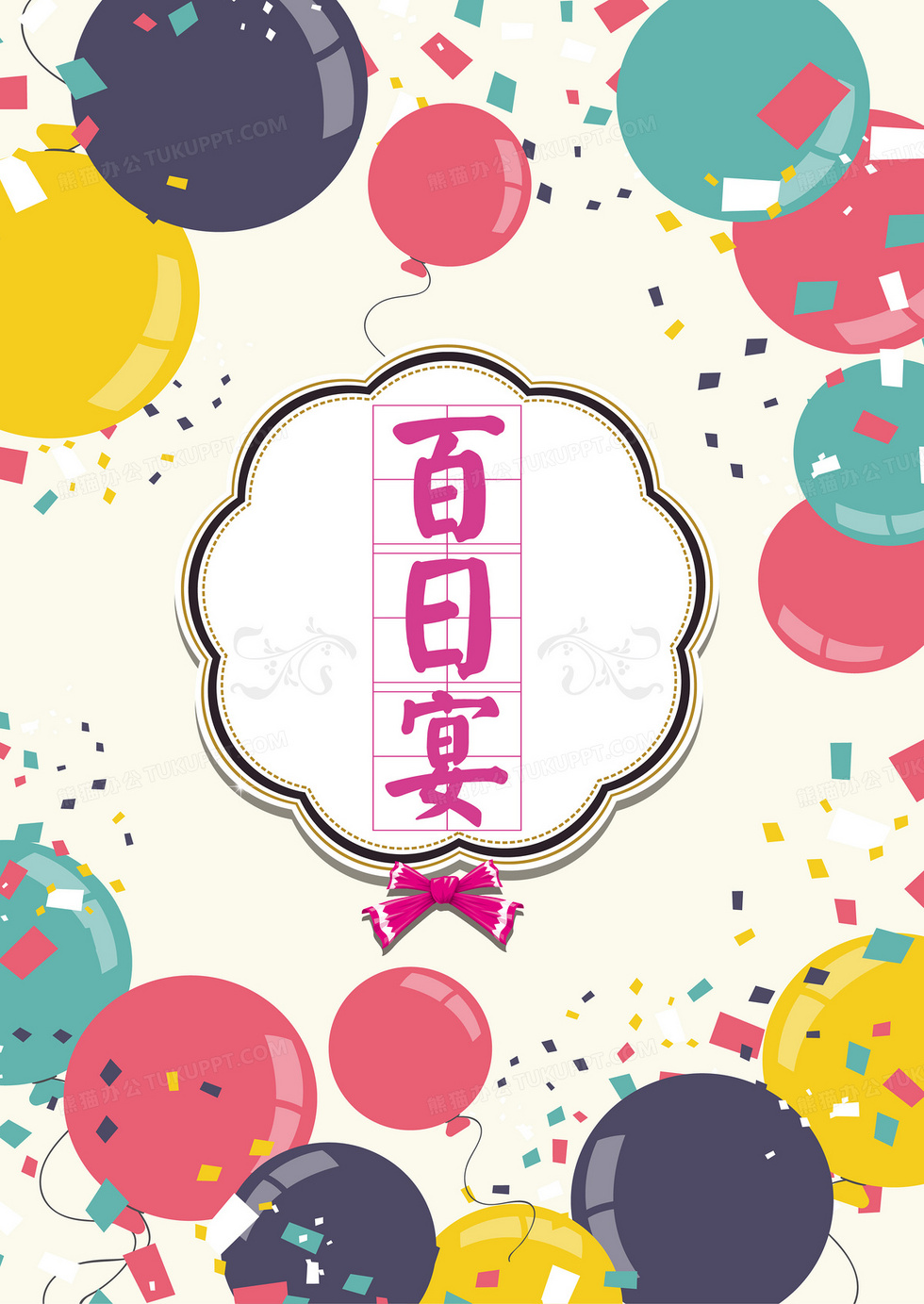 本作品内容为手绘彩色气球百日宴背景素材, 格式为 ai, 图片尺寸为2953 x 4169, 作品中背景图片无需修改, 源文件无水印,可以直接使用, 欢迎使用熊猫办公。 如认为平台内容涉嫌侵权,可通过邮件:tousu@tukuppt.com提出书面通知,我们将及时处理。