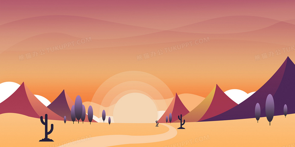 本作品内容为手绘扁平化沙漠狂野夕阳背景, 格式为 psd, 大小42 MB, 图片尺寸为4724 x 2362, 作品中背景图片无需修改, 源文件无水印,可以直接使用, 欢迎使用熊猫办公。 如认为平台内容涉嫌侵权,可通过邮件:tousu@tukuppt.com提出书面通知,我们将及时处理。
