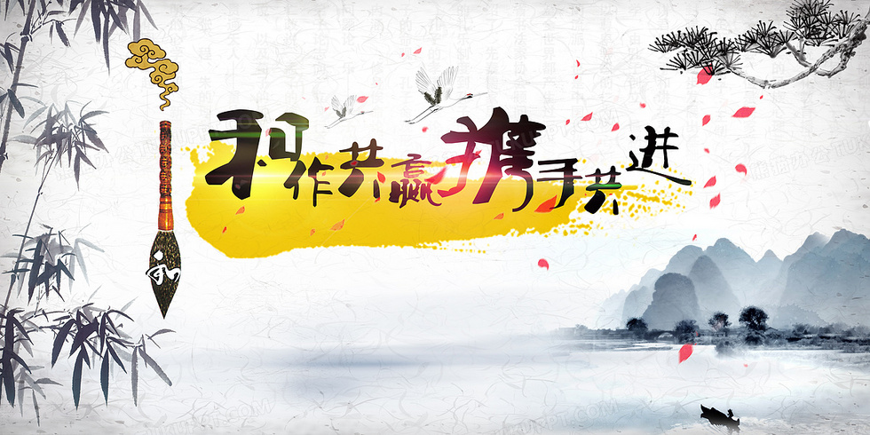 本作品内容为中国风水墨画合作共赢背景素材, 格式为 psd, 图片尺寸为6000 x 3000, 作品中背景图片无需修改, 源文件无水印,可以直接使用, 欢迎使用熊猫办公。 如认为平台内容涉嫌侵权,可通过邮件:tousu@tukuppt.com提出书面通知,我们将及时处理。