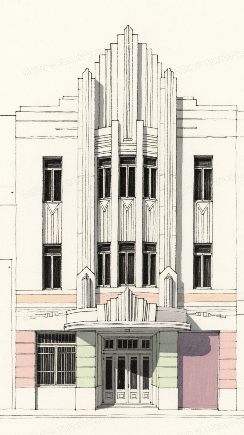 本作品内容为一幅建筑外观的绘画作品, 格式为 jpg, 大小1 MB, 图片尺寸为936 x 1664, 源文件无水印, 欢迎使用熊猫办公。 如认为平台内容涉嫌侵权,可通过邮件:tousu@tukuppt.com提出书面通知,我们将及时处理。