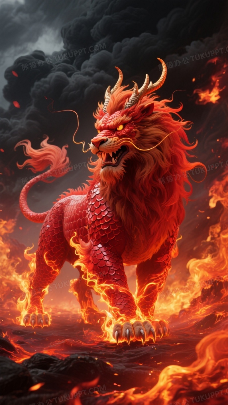 本作品内容为帮我生成一张火麒麟的图片, 格式为 jpg, 大小1 MB, 图片尺寸为936 x 1664, 源文件无水印, 欢迎使用熊猫办公。 如认为平台内容涉嫌侵权,可通过邮件:tousu@tukuppt.com提出书面通知,我们将及时处理。