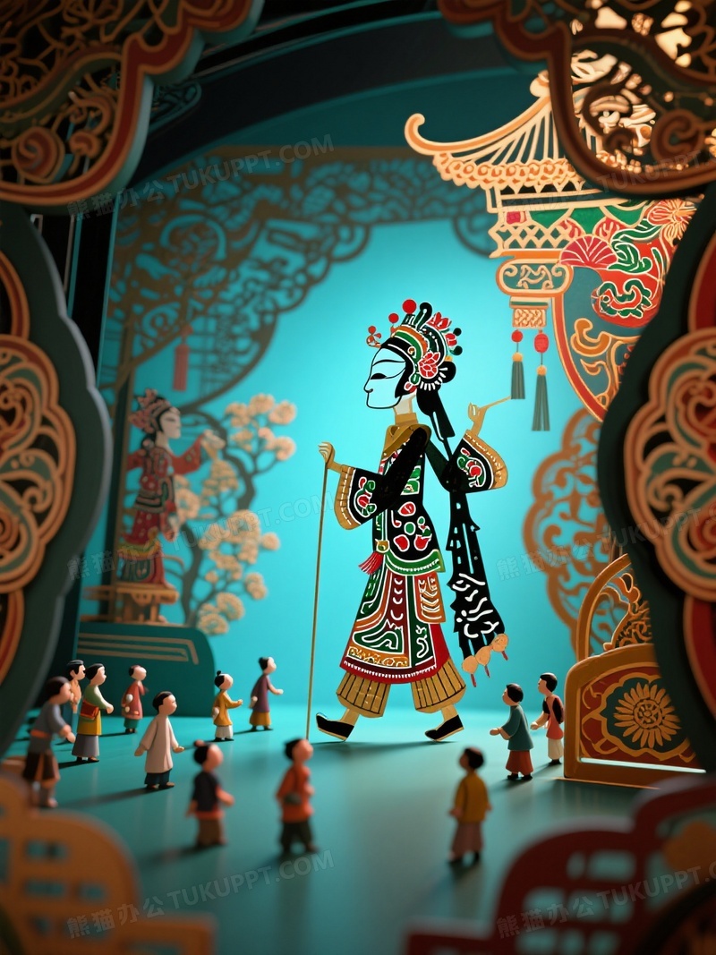本作品内容为中国传统非遗皮影戏传统元素装饰, 格式为 jpg, 大小1 MB, 图片尺寸为1104 x 1472, 源文件无水印, 欢迎使用熊猫办公。 如认为平台内容涉嫌侵权,可通过邮件:tousu@tukuppt.com提出书面通知,我们将及时处理。