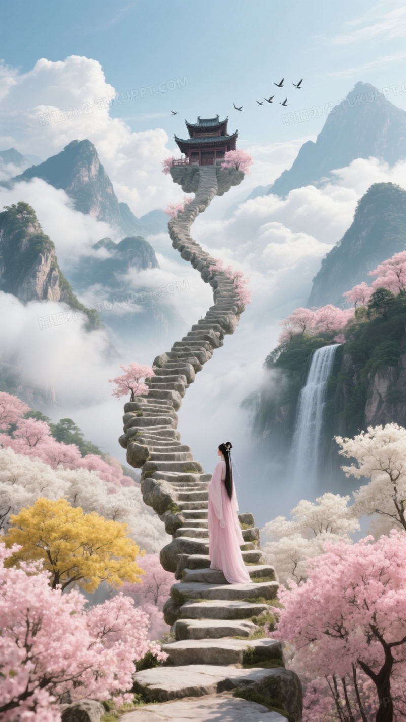 本作品内容为一条弯弯曲曲的悬浮式石头天梯一直伸向天边, 格式为 jpg, 大小1 MB, 图片尺寸为936 x 1664, 源文件无水印, 欢迎使用熊猫办公。 如认为平台内容涉嫌侵权,可通过邮件:tousu@tukuppt.com提出书面通知,我们将及时处理。