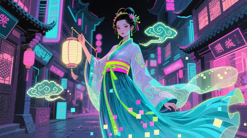 本作品内容为新中式国潮插画改良汉服搭配荧光色腰封, 格式为 jpg, 大小1 MB, 图片尺寸为1664 x 936, 源文件无水印, 欢迎使用熊猫办公。 如认为平台内容涉嫌侵权,可通过邮件:tousu@tukuppt.com提出书面通知,我们将及时处理。