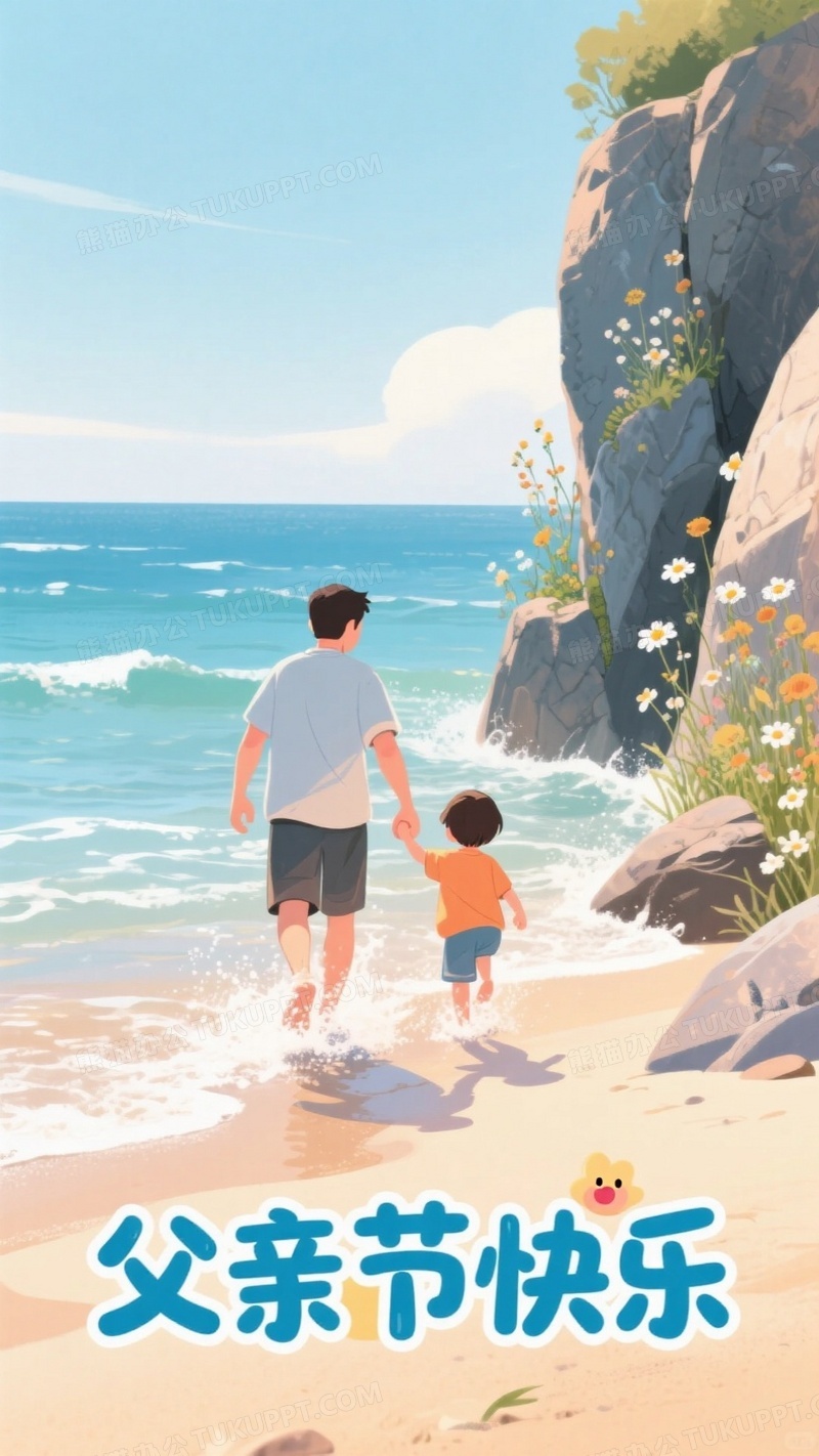 本作品内容为温暖的父亲节插画爸爸和孩子在海边沙滩, 格式为 jpg, 大小1 MB, 图片尺寸为936 x 1664, 源文件无水印, 欢迎使用熊猫办公。 如认为平台内容涉嫌侵权,可通过邮件:tousu@tukuppt.com提出书面通知,我们将及时处理。