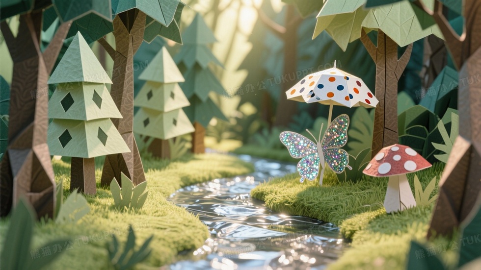 本作品内容为折纸艺术风格森林秘境, 格式为 jpg, 大小1 MB, 图片尺寸为1664 x 936, 源文件无水印, 欢迎使用熊猫办公。 如认为平台内容涉嫌侵权,可通过邮件:tousu@tukuppt.com提出书面通知,我们将及时处理。