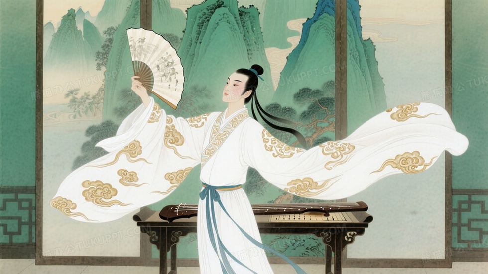 本作品内容为工笔重彩戏曲书生挥扇亮相图, 格式为 jpg, 大小1 MB, 图片尺寸为1664 x 936, 源文件无水印, 欢迎使用熊猫办公。 如认为平台内容涉嫌侵权,可通过邮件:tousu@tukuppt.com提出书面通知,我们将及时处理。