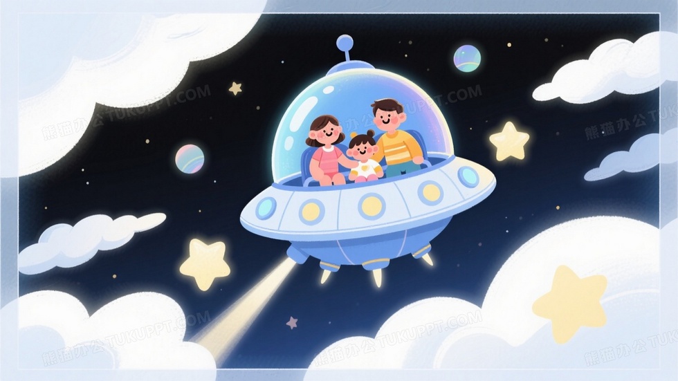 本作品内容为童趣满满的卡通插画一家人坐在泡泡形状的宇宙飞船去冒险, 格式为 jpg, 大小1 MB, 图片尺寸为1664 x 936, 源文件无水印, 欢迎使用熊猫办公。 如认为平台内容涉嫌侵权,可通过邮件:tousu@tukuppt.com提出书面通知,我们将及时处理。