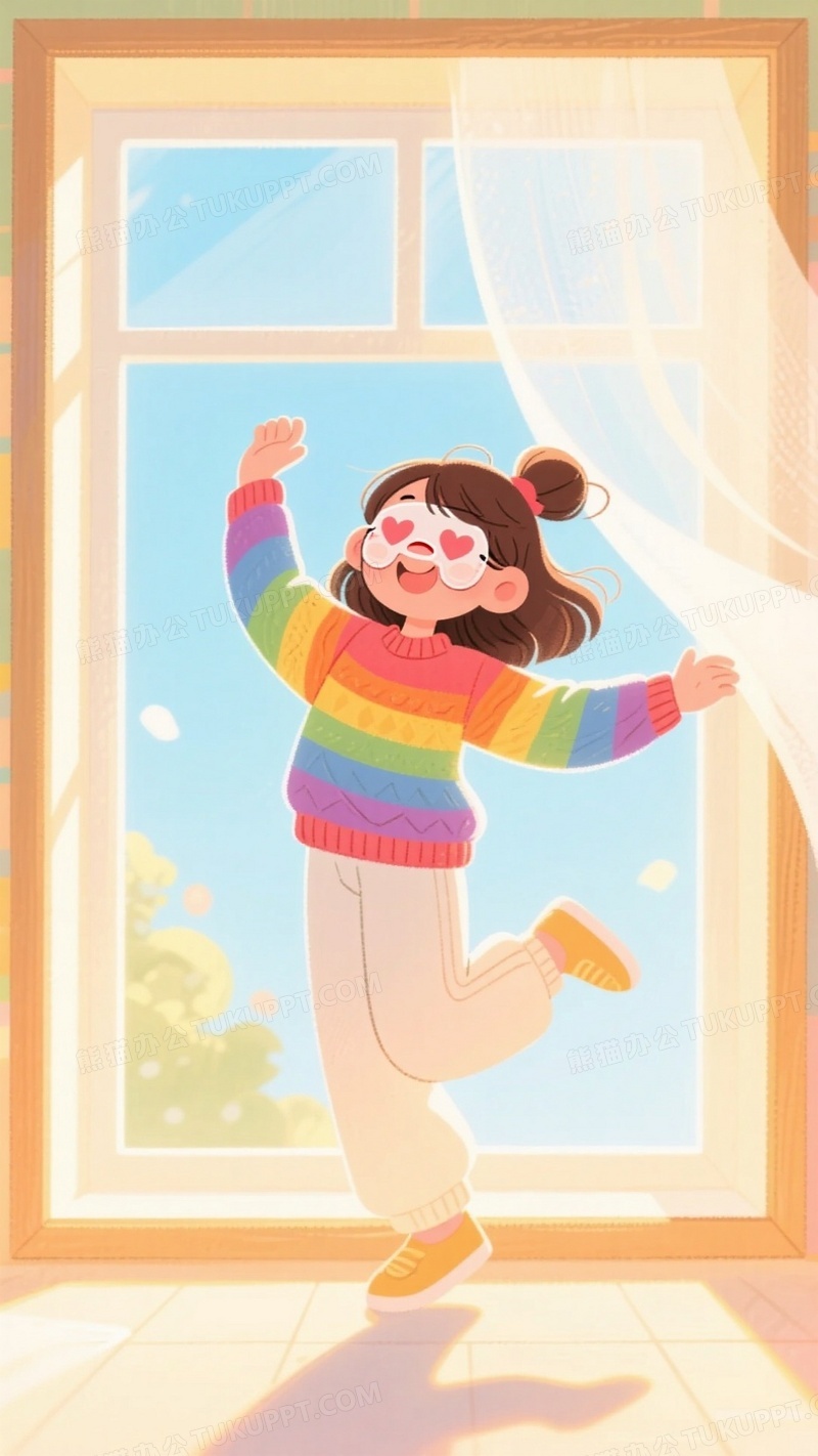 本作品内容为治愈系卡通插画女孩穿着彩虹毛衣开心地敷着爱心面膜, 格式为 jpg, 大小1 MB, 图片尺寸为936 x 1664, 源文件无水印, 欢迎使用熊猫办公。 如认为平台内容涉嫌侵权,可通过邮件:tousu@tukuppt.com提出书面通知,我们将及时处理。