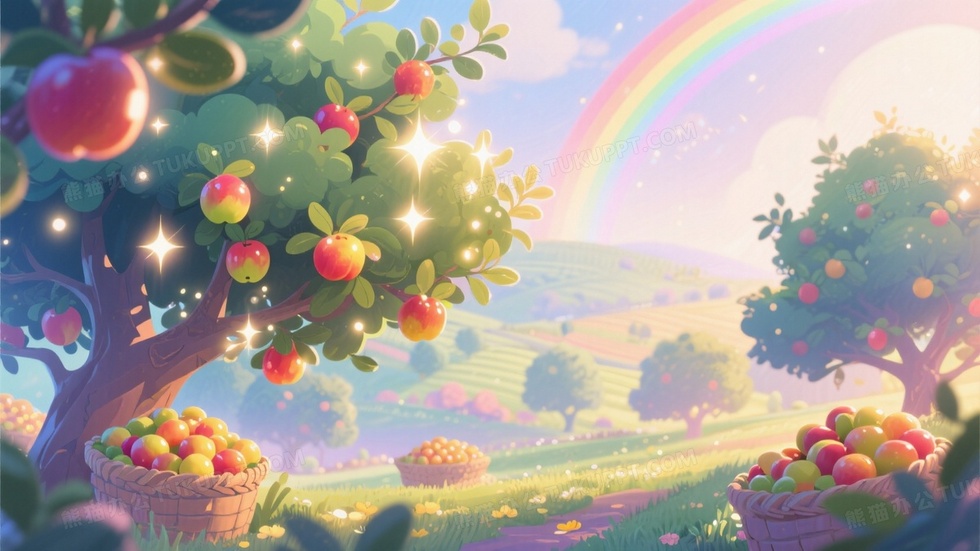 本作品内容为梦幻卡通插画描绘果园丰收, 格式为 jpg, 大小1 MB, 图片尺寸为1664 x 936, 源文件无水印, 欢迎使用熊猫办公。 如认为平台内容涉嫌侵权,可通过邮件:tousu@tukuppt.com提出书面通知,我们将及时处理。